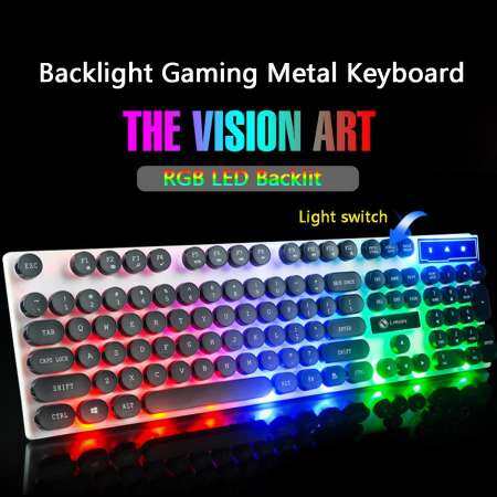 TX30 104 คีย์ไฟสว่างจากด้านหลังแบบใช้สายไฟปรับ RGB LED แบ็คไลต์ USB Mechanical GAMING แป้นพิมพ์โลหะ